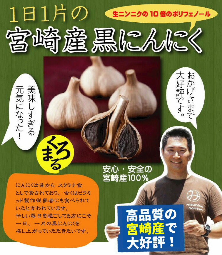 これまでにんにく独特の臭いで敬遠していた方も大丈夫です。にんにくを熟成・発酵させることによって、臭いの元となるイオウ化合物が減少しますので、にんにく特有の臭いがほとんど無くなり、味も生にんにくと比べてフルーティに変化してプルーンの様な食感になり食べやすくなるというのが最大の特徴です。